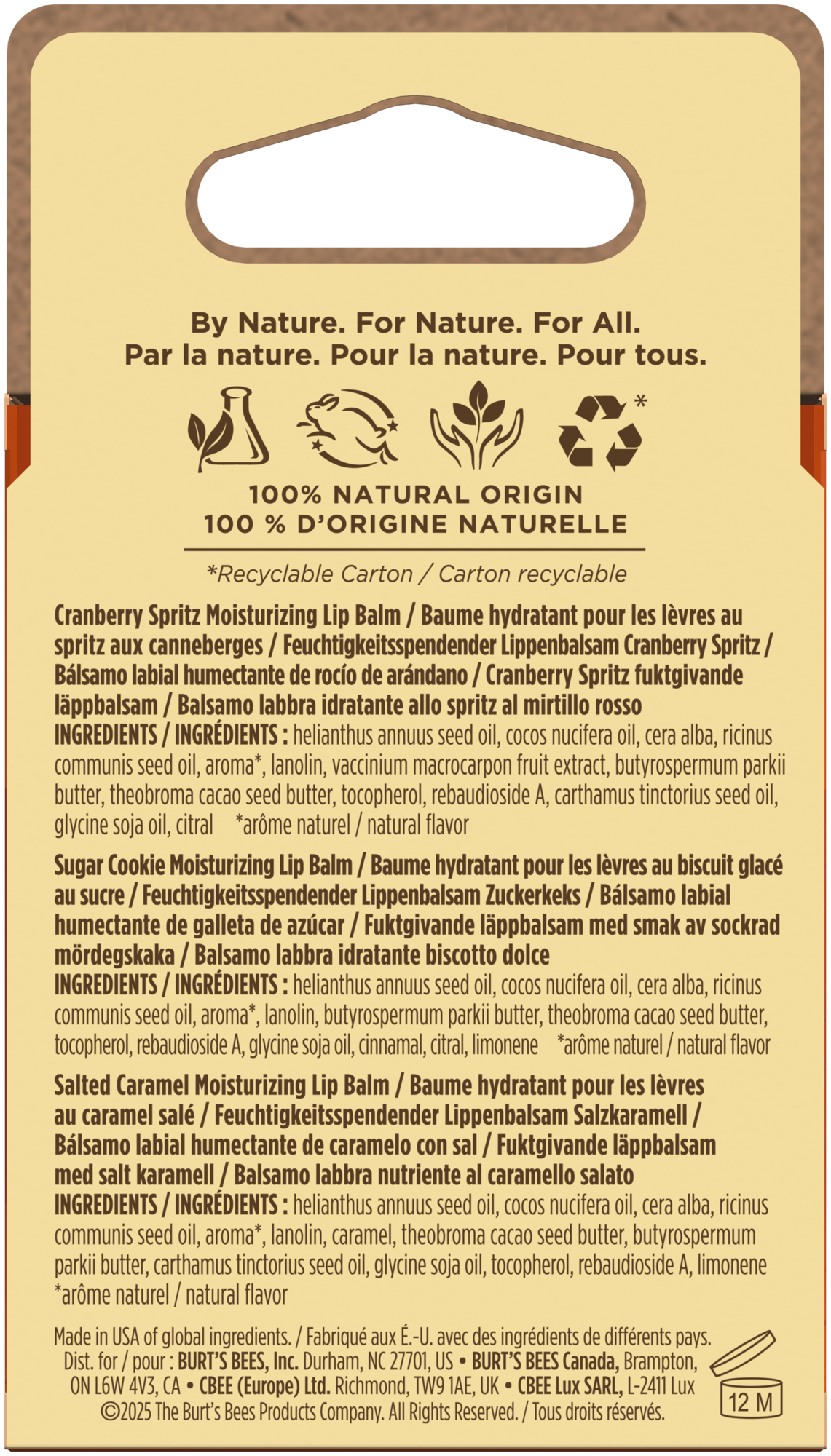 Everything your lips crave this winter - wrapped up in three deliciously festive flavours. There’s the sweet, refreshing sparkle of cranberry spritz, the rich, buttery indulgence of salted caramel, and the nostalgic, sugar-dusted warmth of sugar cookie. Each balm is made with 100% natural origin ingredients, like beeswax and nourishing oils, to moisturise and soften lips with every touch.