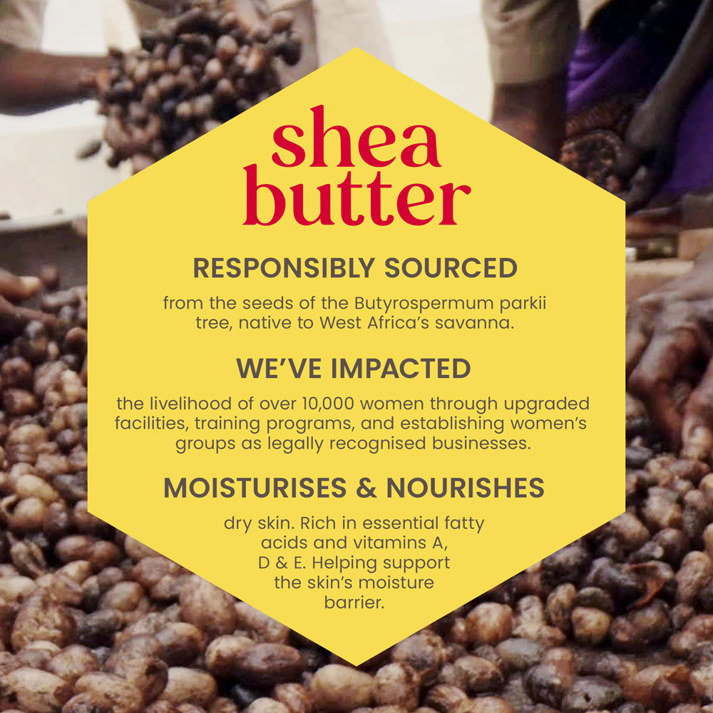 Formulated with hard-working, 99% natural origin ingredients, this indulgent Hand Cream provides all day moisture, with antioxidant-rich Shea Butter to support the skin’s natural moisture barrier and leave hands replenished and silky-soft. Delicately scented with the sweet, natural botanical-blend of Wild Rose & Berry to invigorate the senses.